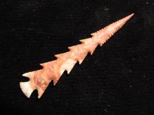 This Hohokam point is made from a piece of Nevada Bullseye jasper which I found out wasn't heat treated well. I had to shorten it due to a crack towards the back but this one still fits the parameters of many of the old ones. Its a reddish brown with whitish swirls in it. For some reason the pics aren't as true to the actual color as it is to the naked eye but you get the idea. |