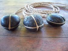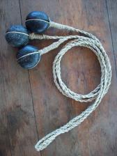i craft my bolos from grooved river cobbles and hand twisted hemp. although each one is slightly different, all have weights roughly the size of a large egg and are about 30in folded. |