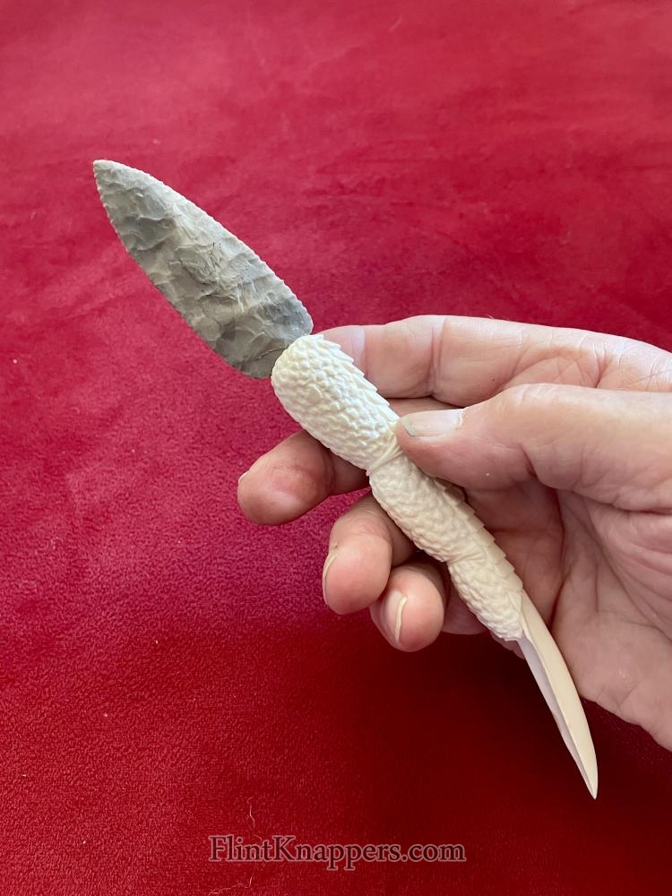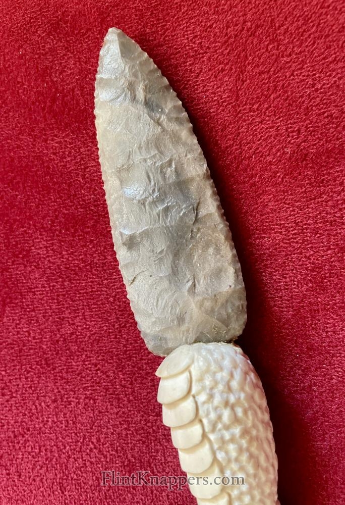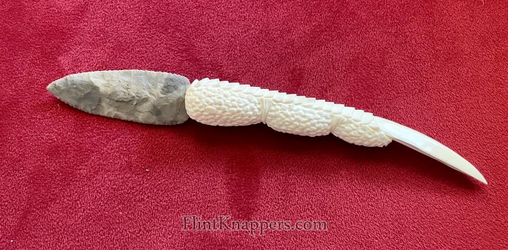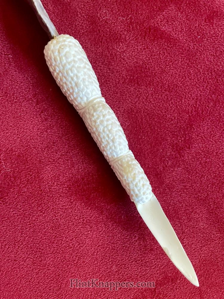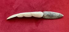 I made this compound bone fish hook about 20 years ago and recently turned it into a necklace. The 3-1/4" hook hangs from a hand twisted Irish linen cord with a bone toggle and loop closure.