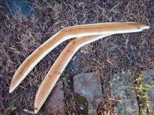 Two new small flight (bird) boomerangs made from Italian Plum. Fully functional for sport or hunting small game. $35 each or $60 for the pair.
