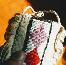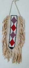 Brain tanned buckskin I tanned. 8/0 beads Black,White,Red and Purple sewn with sinew lazy stitch style. Heavy leather insert. Any questions please ask.
