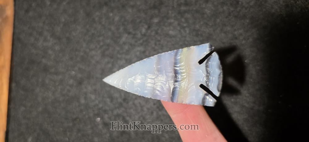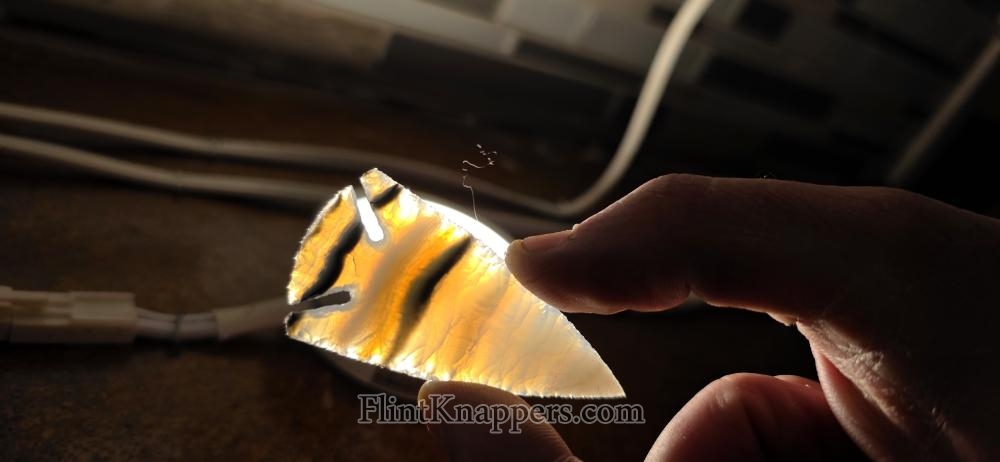 Silversheen Obsidian blade with Fordite cast in resin handle |