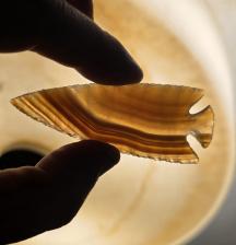 Obsidian blade handle is aluminum honeycomb cast in resin |