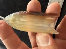 I am pretty sure this is Brazilian agate It could be some stuff from Mexico beautiful though very thin, nice flaking. It has an orange cast to it. If PayPal is down on this site, you can Venmo me or Zelle me hit me with an email and phone number. it has a double terminated flute on both sides. |