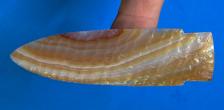 This Scottsbluff point is knapped from a some Brazilian Agate with nice flowing banding and, of course, gorgeous translucency that Brazilian Agate is know for. |