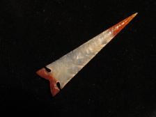 This nice little Wintu point is made from a rather unique piece of Brazilian agate with a clear center and a red base and tip. I should probably put it in my 'keeper' collection but I think I'll see if someone wants it more badly than I do. |
