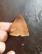 Here is a dandy of a Wintu with deep notches, very symmetrical flake patterns and super thin serrated edges..thanks for viewing.                       |