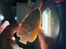 Made from beautiful semi translucent Coastal Plains chert from Brier Creek! Big scars on this percussion and pressure flaked piece. Serrated sharp, thanks for looking! |
