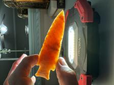 Made from a sweet piece of semi translucent Coastal Plains chert from Brier Creek. Oblique pressure flaking and serrated sharp! Thanks for looking! |
