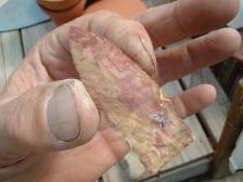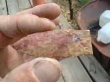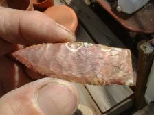 Hi,very decent scottsbluff type pt.,has slighlty rough scars as there is a bit of pitting with a very small hole all the way thru near the base.Good pt.,completely opaque,thin & sharp.Thank you ! |