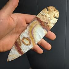 7" bullseye Jasper Dovetail. I've never seen a piece of this material this big. This was percussioned flaked down from a thick slab. I don't know what else to say about this really. the material speaks for itself, such a beautiful rock. I'm just glad I was able to put some really nice work on it