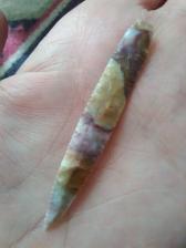 I knapped this colorful point out of creamy bullseye jasper. Beautiful point. Thanks for your time and have a good day. |