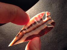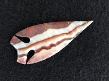 Bullseye Jasper Point . Semi translucent with expanding notches and nice coloring . All my work is micro diamond scribed with my initials and year .