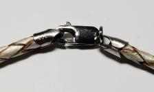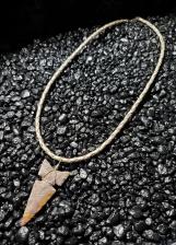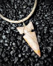 It may add a little bit to the expense, but I always use quality materials to create my pieces. After flintknapping this Burlington Chert Arrowhead, I gave it a sterling silver wire wrap and added it to a pearlescent white, braided, 18 inch leather cord. The clasp is also sterling silver and the arrowhead has dulled edges for a safety and comfort.