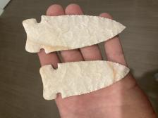 Two Burlington chert points made by Andrew Benedict one is 4 inches long the other is 3 1/2