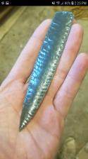 5.5 inch Burns green Paleo style point. Burns green is getting harder and harder to find because the pit has been shut down. The sharp serrated edges on this point add the final touches to this beautiful piece. Thanks for looking                       |