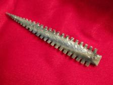 Hi all, I'm back in the saddle again after working on a three month long project for one of the tribes. It paid well but I had zero time for anything else. This nice little serrated Stockton point is made out of banded Burns green obsidian. Try as I might it just doesn't show its colors in the photos as well as I'd like but you get the idea. |