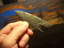 I Knapped this Blade out of some Rare Green odsidian from Burns Oregon area.This blade has a nice sharp gut hook on it. Nice Knife blade just waiting for a Carver to finish up. Thanks for your interest and have a good day.Will combine shipping. |