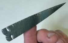 Burns Green obsidian is another one of those materials that's getting hard to come by. It's a very unique variety of obsidian, given it's green and bluish tones. This Wintu point is rather unique, as well. The notch entries are a half millimeter! |