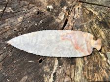 A larger button dovetail with awesome oblique flaking noticeable to one side. |