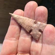 Nicely made Cahokia out of Burlington. Knapped by master flint knapper, Bob Thomas. Pinkish tan. From the Elby Short Collection, Arkansas. Knapped in the 1980’s. |
