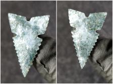Indirect percussioned from a small piece of rough, once thinned, it was pressured to finish.