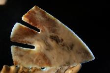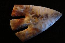 One of my favorite point designs ever. I have loved the Calf Creeks since I saw one embedded in a buffalo skull nearly 5000 years old. This is a great point knapped from Snake River. It is a large spear point with heavy mass and really deep notches, over an inch and a eight. This is a classic must. Awesome point!3. |