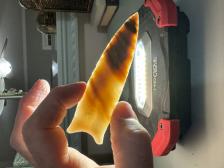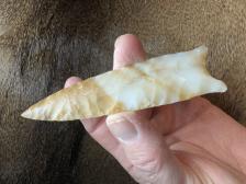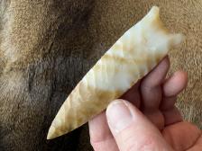 Nicely flaked Dalton made from semi translucent Oregon agate! Needle tip and serrated sharp. One edge has remnants of a crystal seam. Thanks for looking!