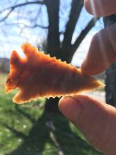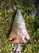 These two are made from beautiful translucent Carter Cave Chert from Kentucky. Material like this is becoming quit rare. The “seedling†point in this pair was made from a thinning flake taken from the larger one. |