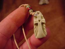 Offered here is a beautiful cross I carved from African butterstone, this stone polished and has the texture of silk, I drilled a small hole and included a sterling silver jump ring and a brown leather cord with some trade beads.Signed bonecarver and numbered 12-023 |