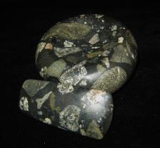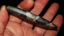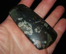This celt is made out of Gowganda tillite, a 2 billion year old conglomerate from Northern Ontario. Often used in this area by prehistoric people for ground stone tools. |