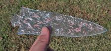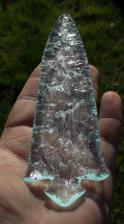 Ross - This beauty measures 7 inches x 2 1/8 inches wide. After pouring through books I was inspired to make a ross similar to some found in hopewell mounds in ross and posey county indiana and ohio. Quartz crystal this size is hard to come by so this is glass with red ochre stains just as they did. These were grave goods of the hopewell elite. Now is your chance to own one at an affordable price!
