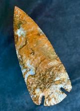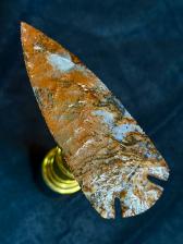 This is a beautifully colored piece of dendritic Snake River Agate, full of various shades of chocolates, browns, blacks, grays, and blues.This piece was glassy and really knapped well. It’s a very nice point. |