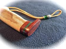 Here’s a one-of-a-kind handle for your knife project. I fashioned this from figured yellow poplar wood & cocobolo for the guard. (The beaded – soft leather lanyard is ready to go but not attached. You don’t want it getting in the way & getting soiled while you are drilling or slotting the piece for your blade. After your blade is mounted & your knife is done, you can dab a bit of super glue in the hole & attach the lanyard). I even installed a brass liner to the lanyard hole. Nice dark greenish streaking on the cream colored poplar handle. Yellow-green spacer matches the lanyard beads. Will make a CLASSY knife – very comfortable in the hand. Sanded, buffed, & mirror polished! ($7.00 shipping on this one). |
