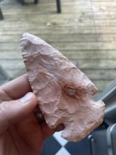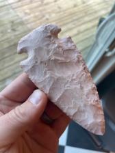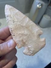A beautiful heat-treated, Burlington Clipped Winged Dovetail arrowhead. This point is extremely well-balanced. Broad percussion scars along with fine secondary flaking.