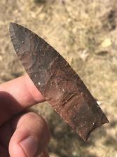 This Clovis is made from a really cool piece of West Texas Jasper. Colors include brick red, brown, black, and white. Really nice bands and character in this piece!!