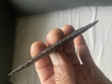 Raw oil chert. Antler punch and bison horn pressure. |