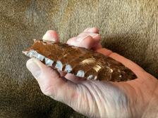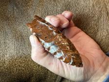 A nicely flaked and fluted Clovis made from beautiful mahogany obsidian with a deep almost maroon color. Serrated sharp, thanks for looking! |