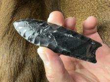 Nicely flaked and fluted obsidian Clovis! Hafting area is ground, serrated sharp. Thanks for looking! |