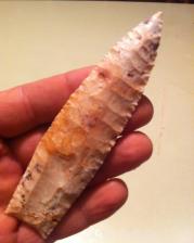 Pink and orangey Burlington Clovis with fossil and crystal inclusions