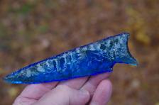 This is a beautiful Cobalt Blue Cody Style glass knife, knapped by me. 5 1/4 inches long by 1 1/4 inches wide. Shipping is Free. I am selling my entire collection so if you are buying more than one point make me an offer for a multiple purchase. |