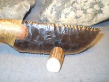 Knapped Dacite Paleo Knife Elk Antler with Walnut End Cap Handle |