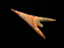 This colorful Gunther barbed point is made from a piece of flint ridge and has a mint green colored barb with a sort of white and red peppermint looking coloration throughout the rest of it. This one has long barbs and fine serrations with a needle tip. If a Gunther point was to be the color of Christmas candy this would probably be it. |