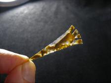 Nicely styled Columbia River point knapped from Oregon Agate. This material from north/central Oregon is a striking mix of translucent purple tinted agate with ribbons of yellowish jasper. Very unique and beautiful material. Super fine knapped point! |