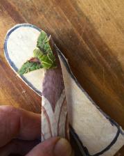 I was cutting out the handle preform and the wood began to smoke, due to a dull blade. I usually change the blade immediately if the material smokes. The burnt birds eye maple smelled like freshly baked cookies.....I didn't change the blade, just cleaned it up in the shaping.