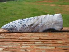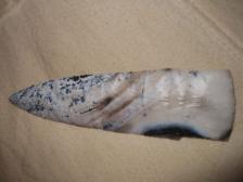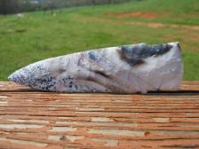 This scots bluff point is made of Mexican parall agate.It has black crystal dendrites ,and a swirl pattern in the agate. |