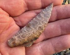 Fossilized Indonesian coral blade, knapped by Cliff Carney. |