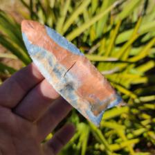 A very nice flaked and fluted colorful coral clovis I just knocked out.