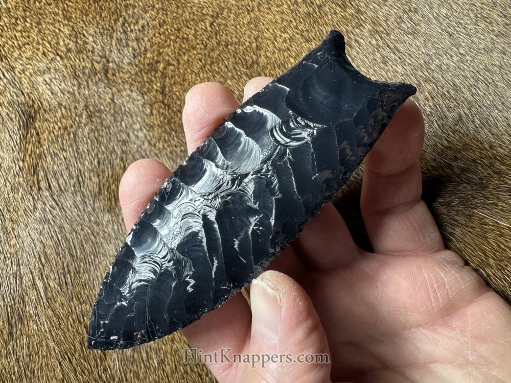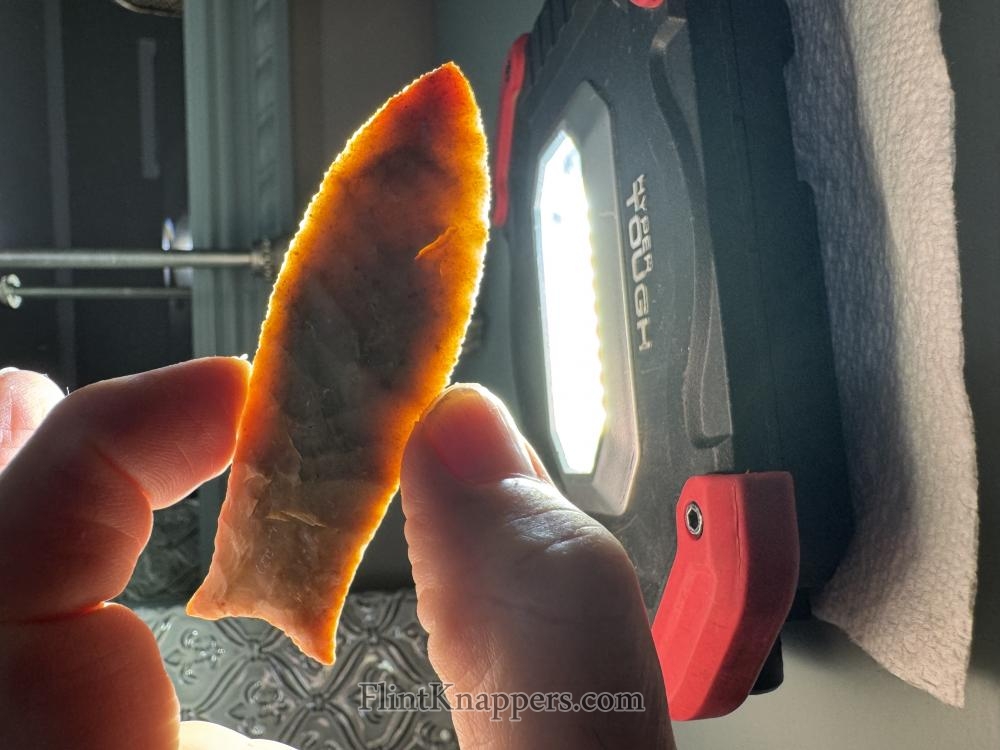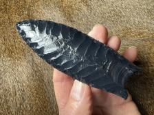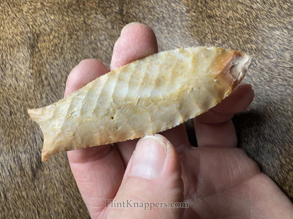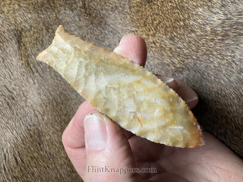 Sweet corner notched point made from a beautiful semi translucent piece of Oregon agate. Serrated sharp, thanks for looking! |
