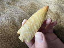 Made from beautiful Coastal Plains chert from Brier creek. Serrated sharp with a nice chevron flaking pattern, thanks for looking |